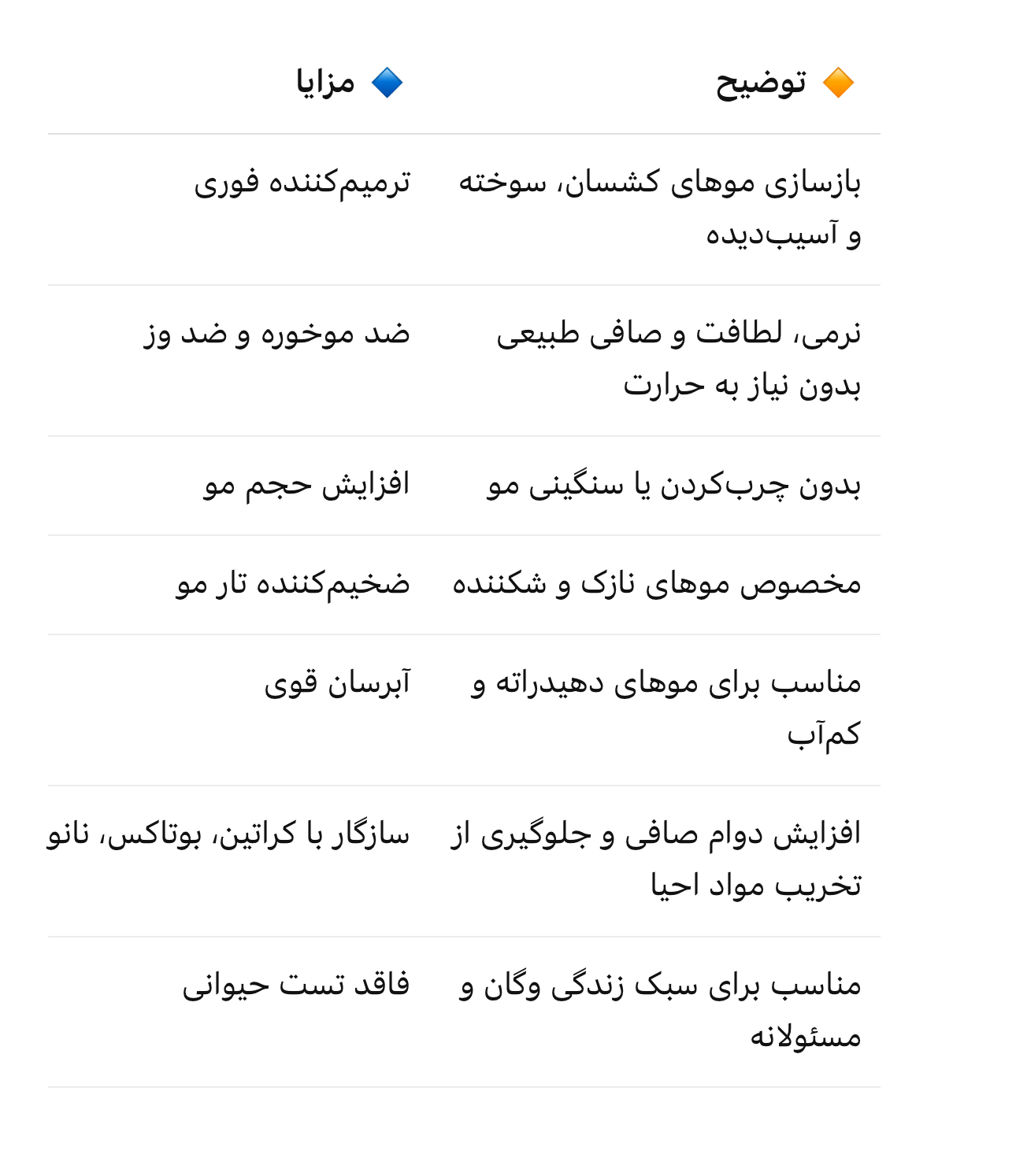 💬 مناسب برای موهای آسیبدیده، کراتینه، کمآب و کشسان | ترمیمکننده، آبرسان، ضد وز و ضد موخوره