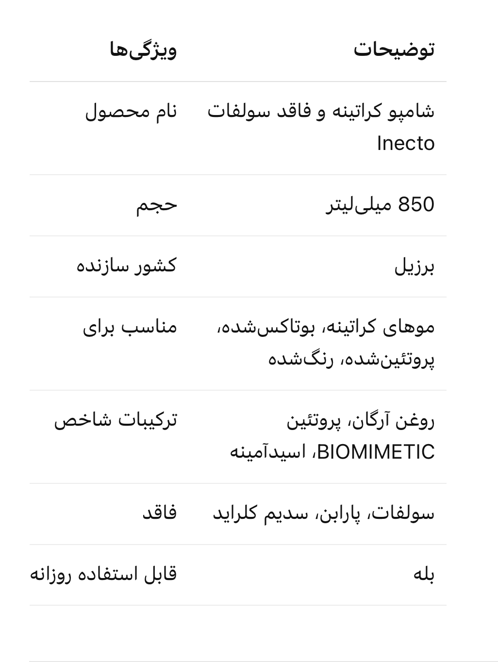 ✅ بله، شامپو اینکتو دقیقاً برای موهایی که درمان‌های احیایی مثل کراتین، نانوپلاستیا یا بوتاکس شده‌اند طراحی شده و باعث حفظ نتیجه، نرمی و براقیت مو می‌شود.
